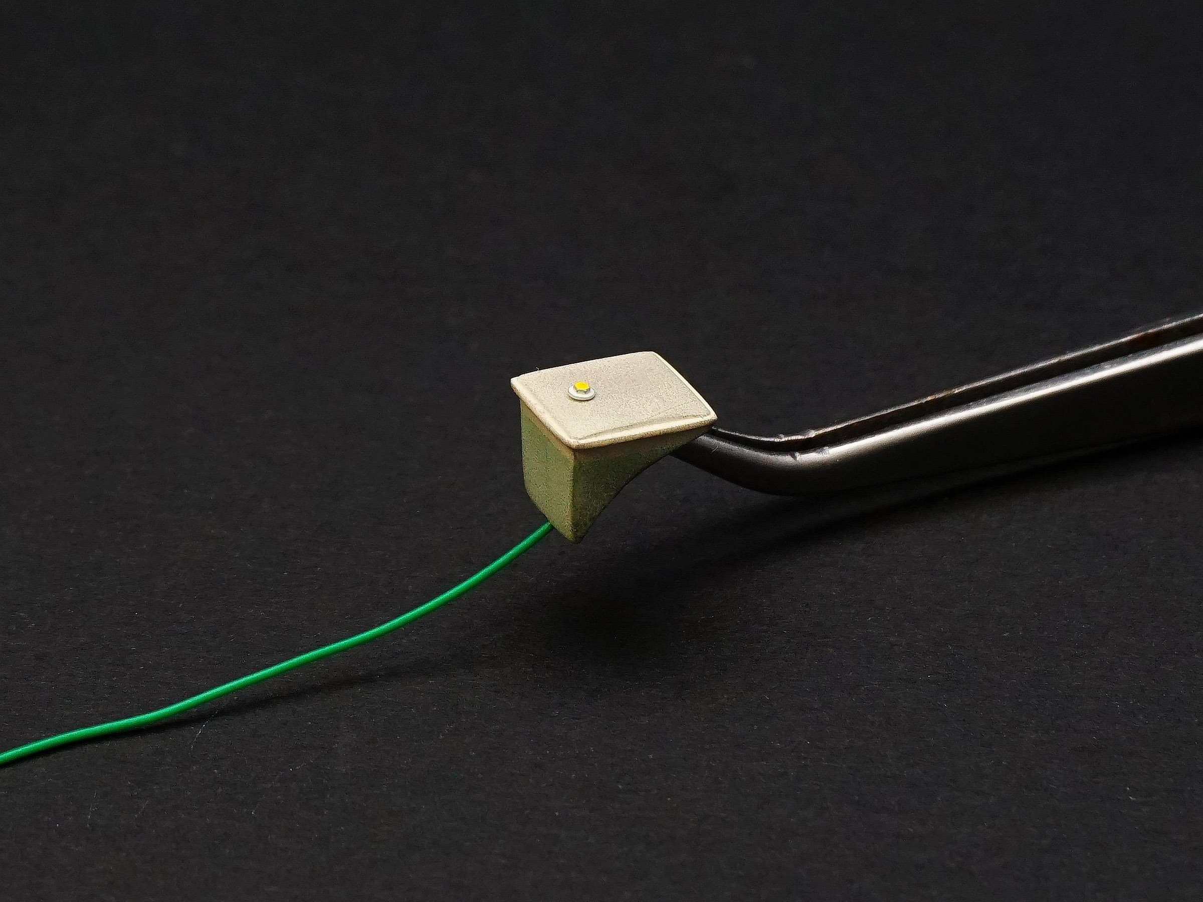 The Fiat steering wheel was drilled and I used SCO rivets - 0.5 mm (SCO-R042) to attach it. The steering column shifters are made and bent to the appropriate shape from 0.4 mm wire. I used 0.3 mm wire to make the wires that run under the steering column.