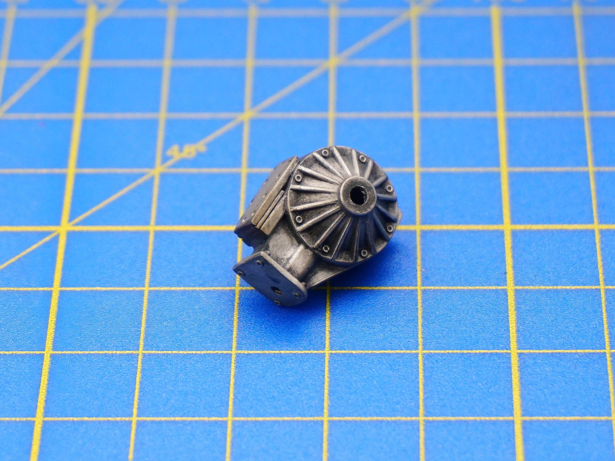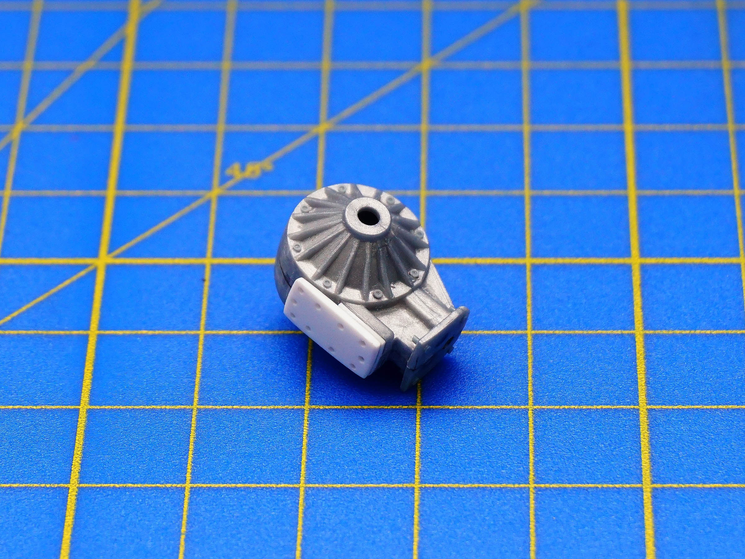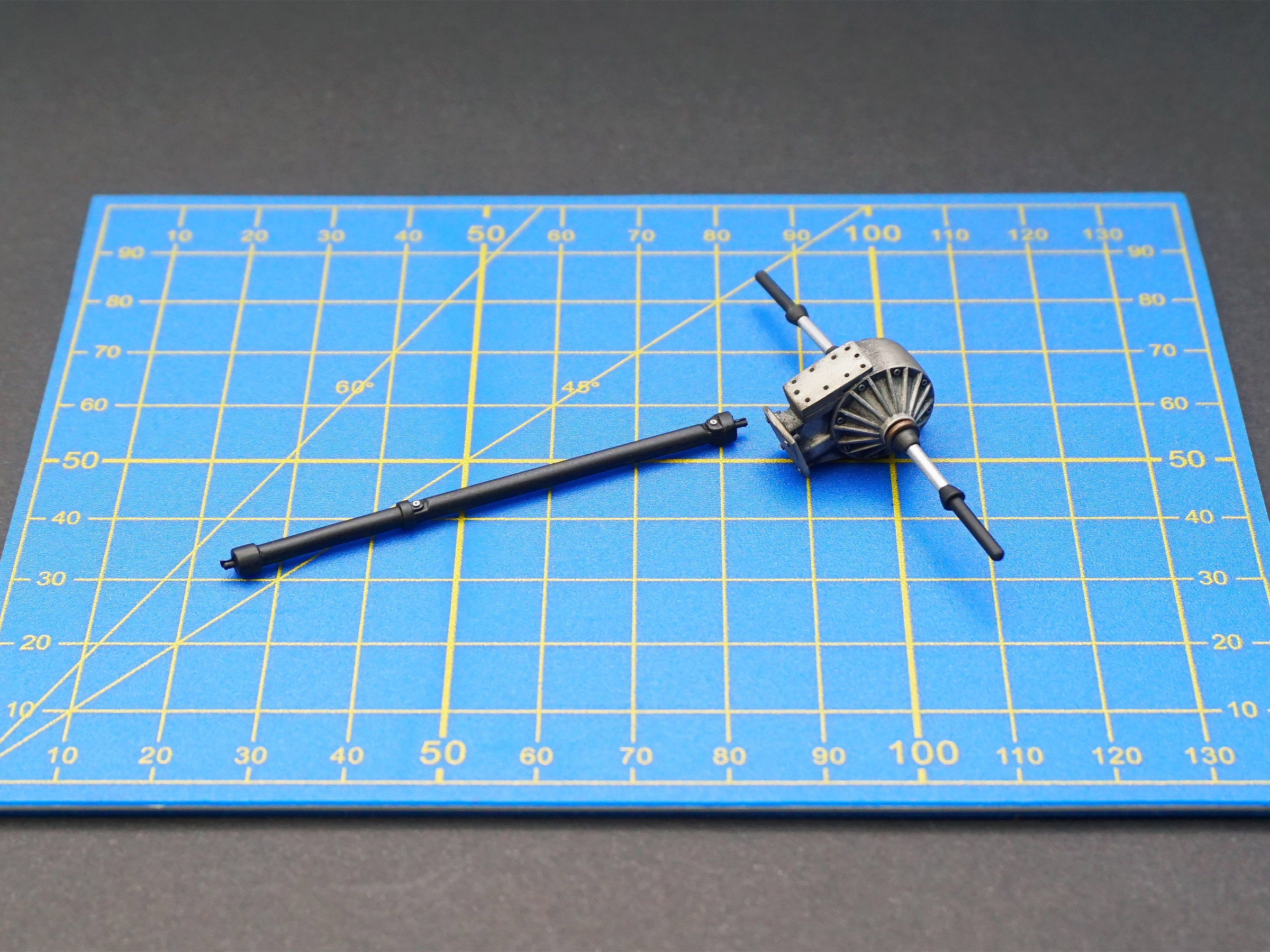 The part was painted with Humbrol 11 and then Humbrol Clear Matt. The next stage of work is wash - Tamiya Weathering Master Colors Set B and Humbrol Gray Wash. I enriched the converted drive shaft with SCO-R038 "bolts".