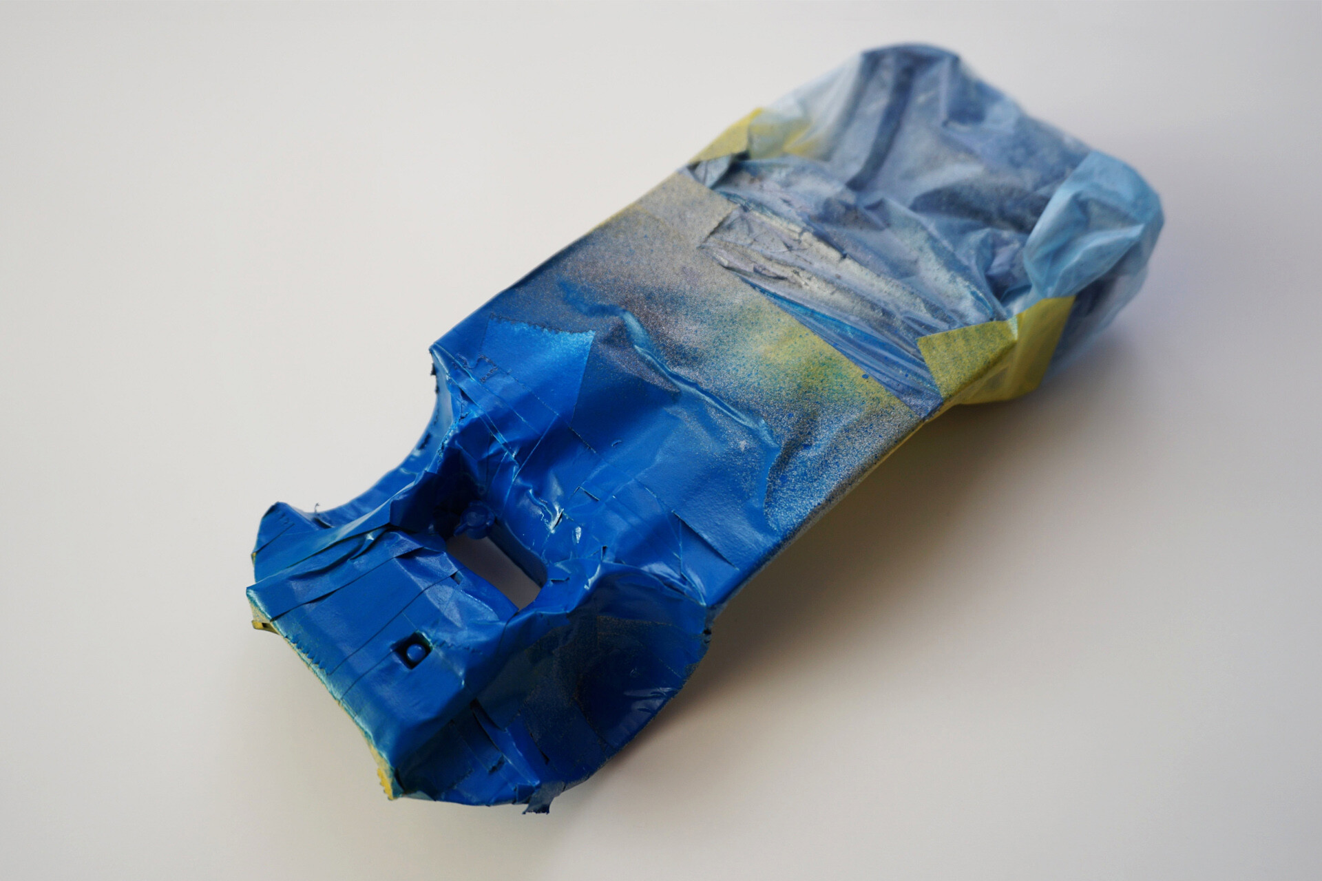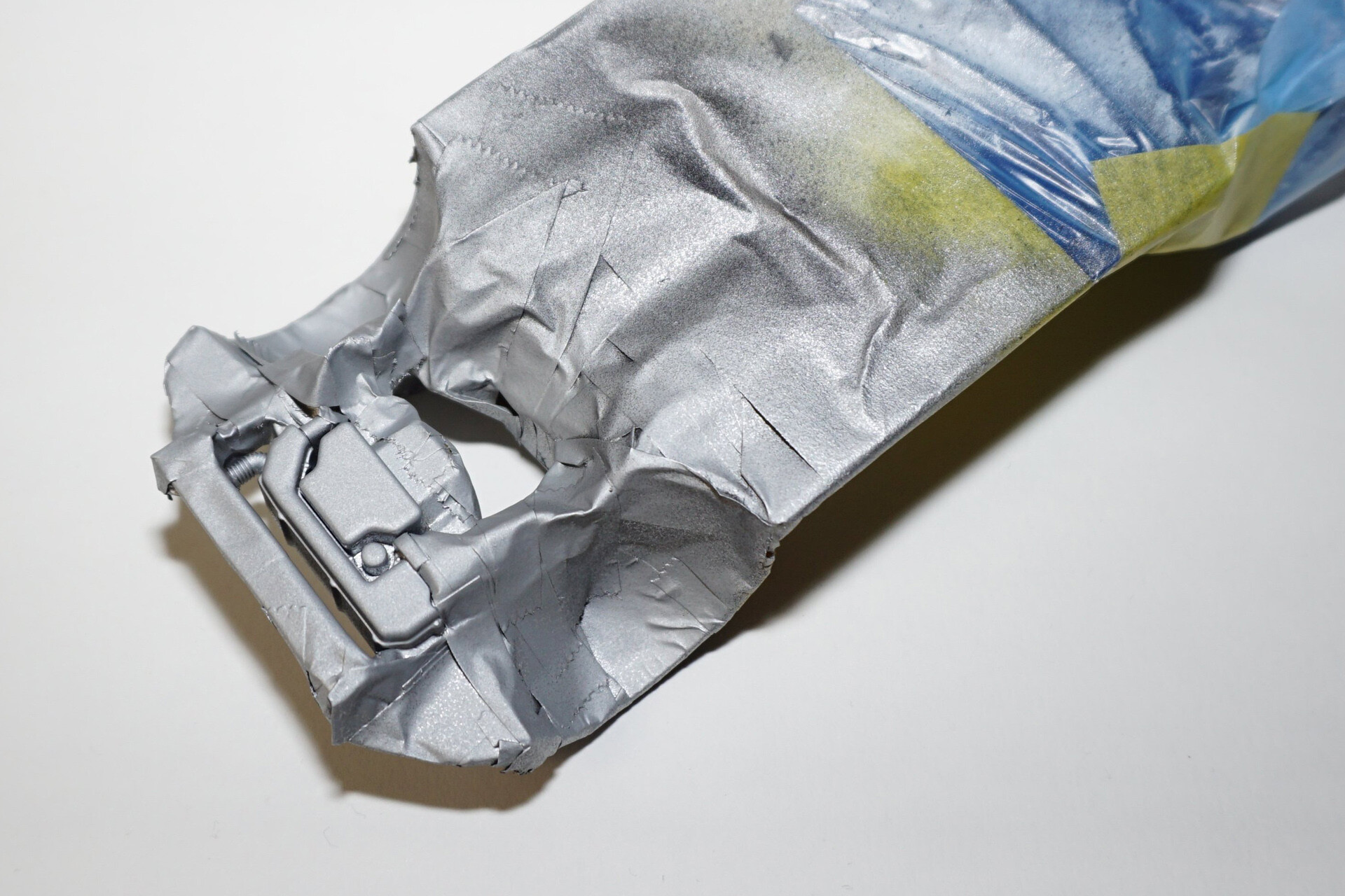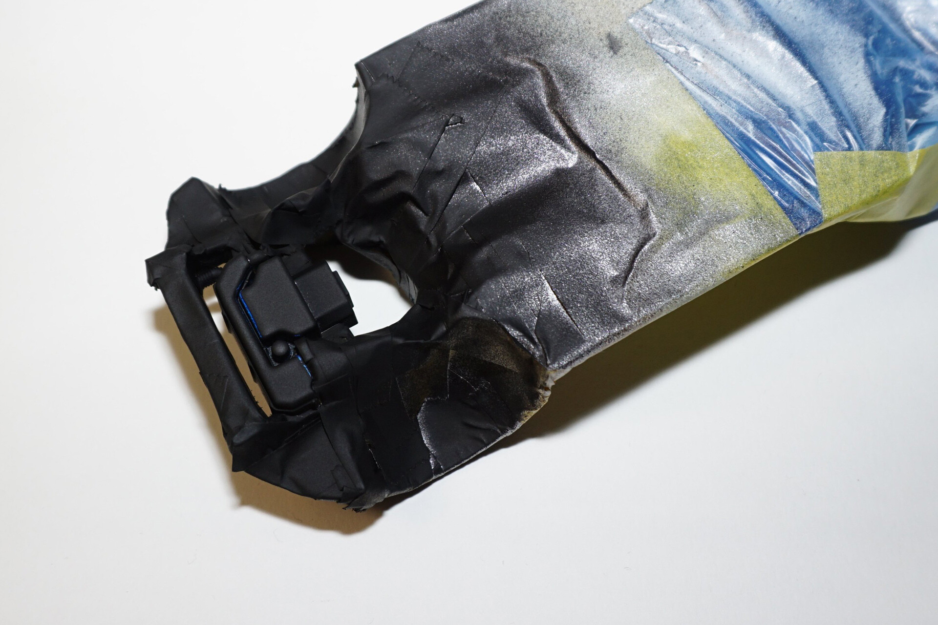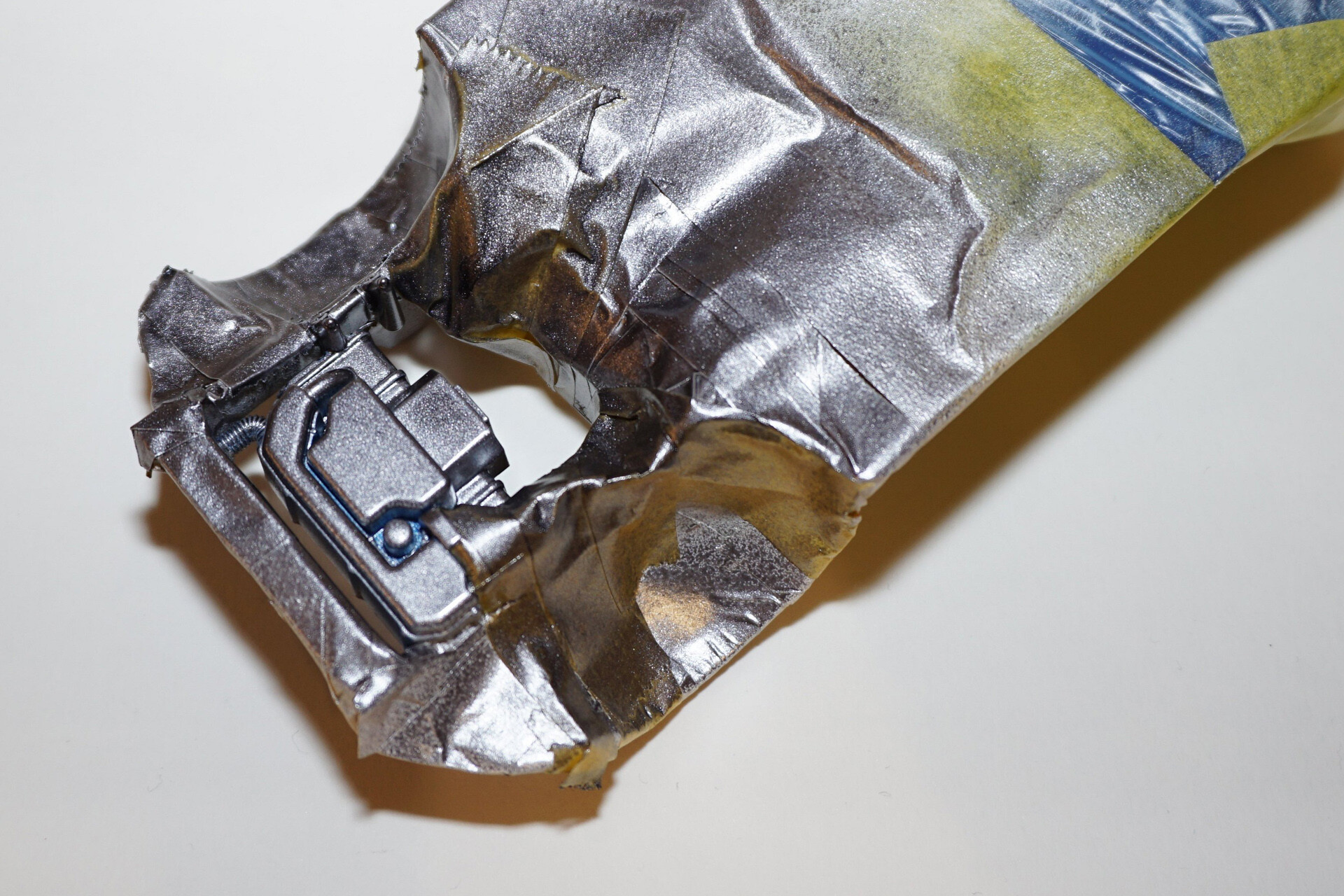 The next stage of work is masking, black painting and wrapping the panels with carbon. The decals were painted with TS-71 Smoke to darken their shade which was too silver. Then several layers of TS-13.