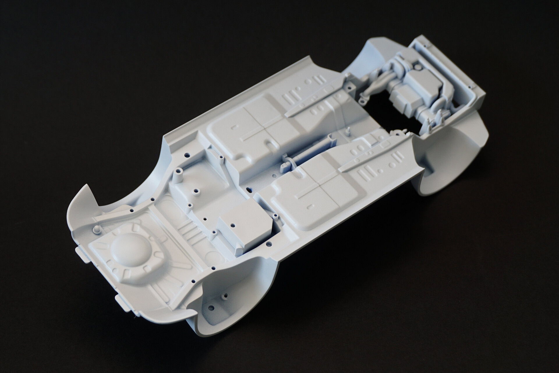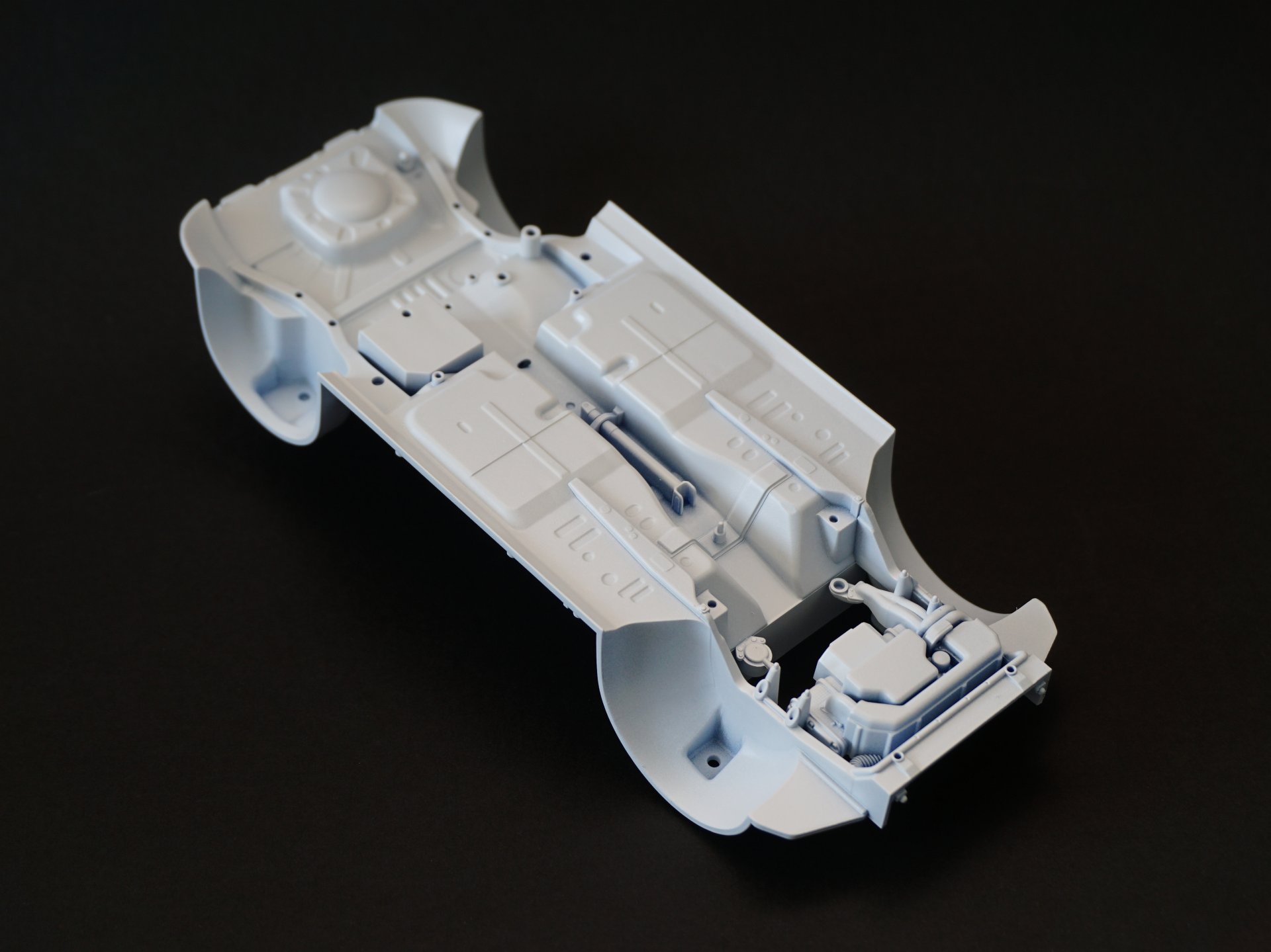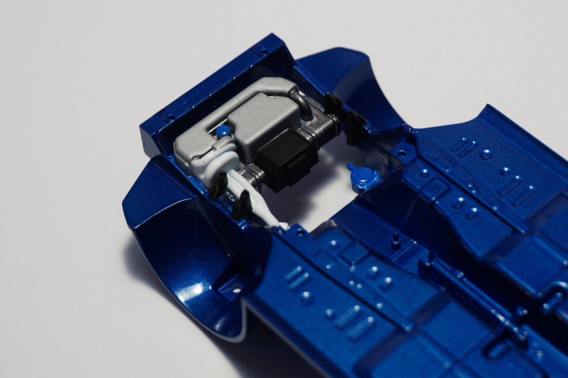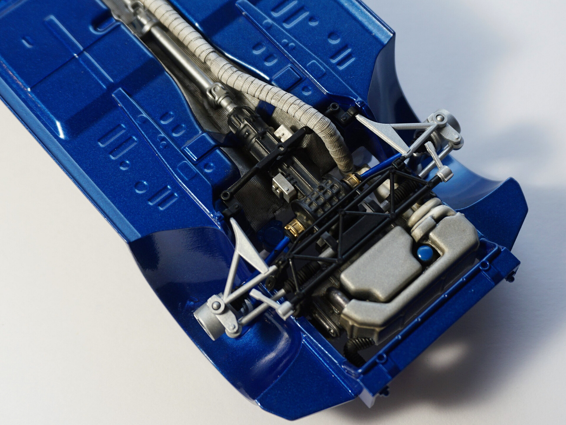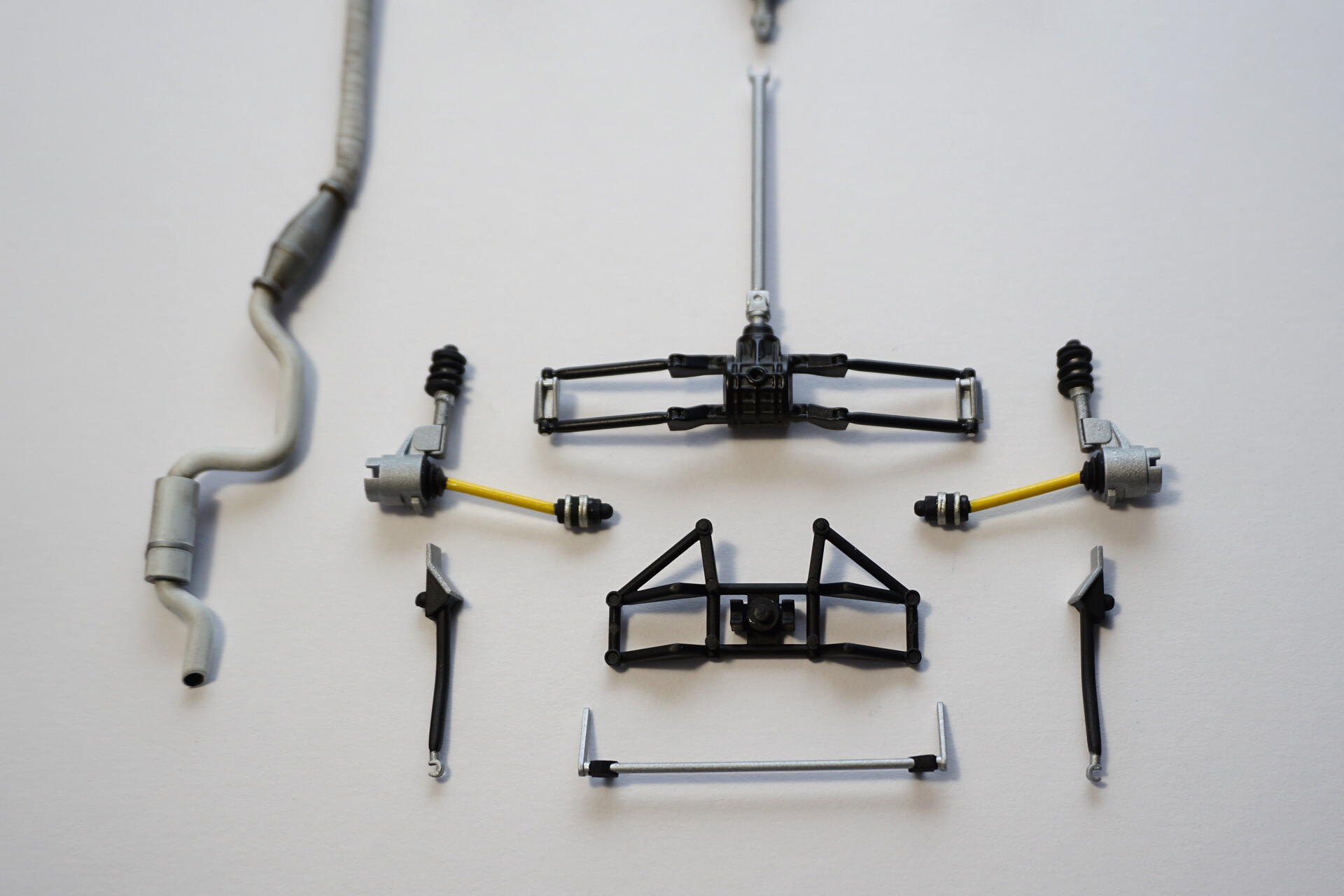 A breakthrough moment in the model building is putting it on wheels. However, I will start with photos of the engine and chassis covers.