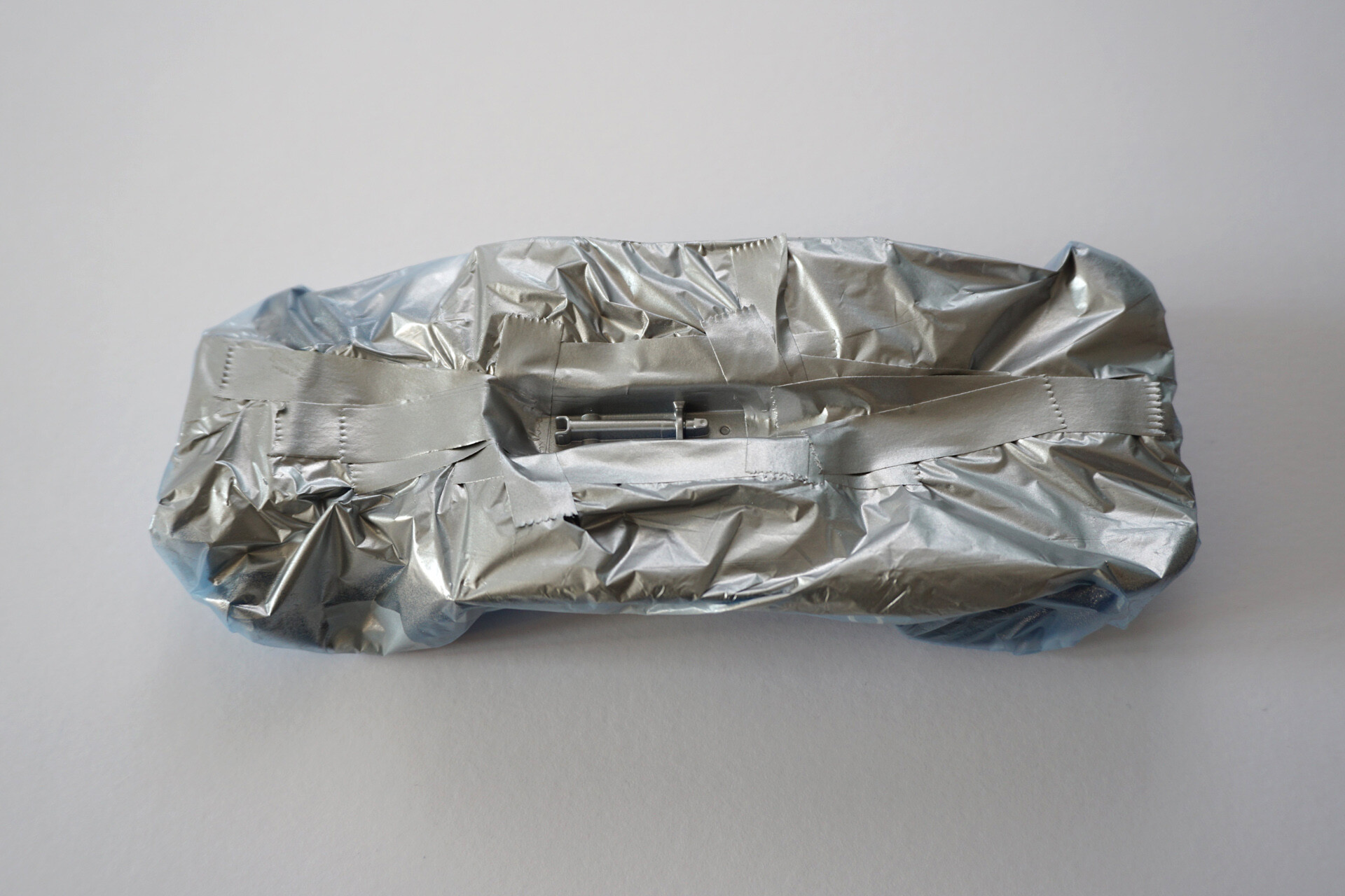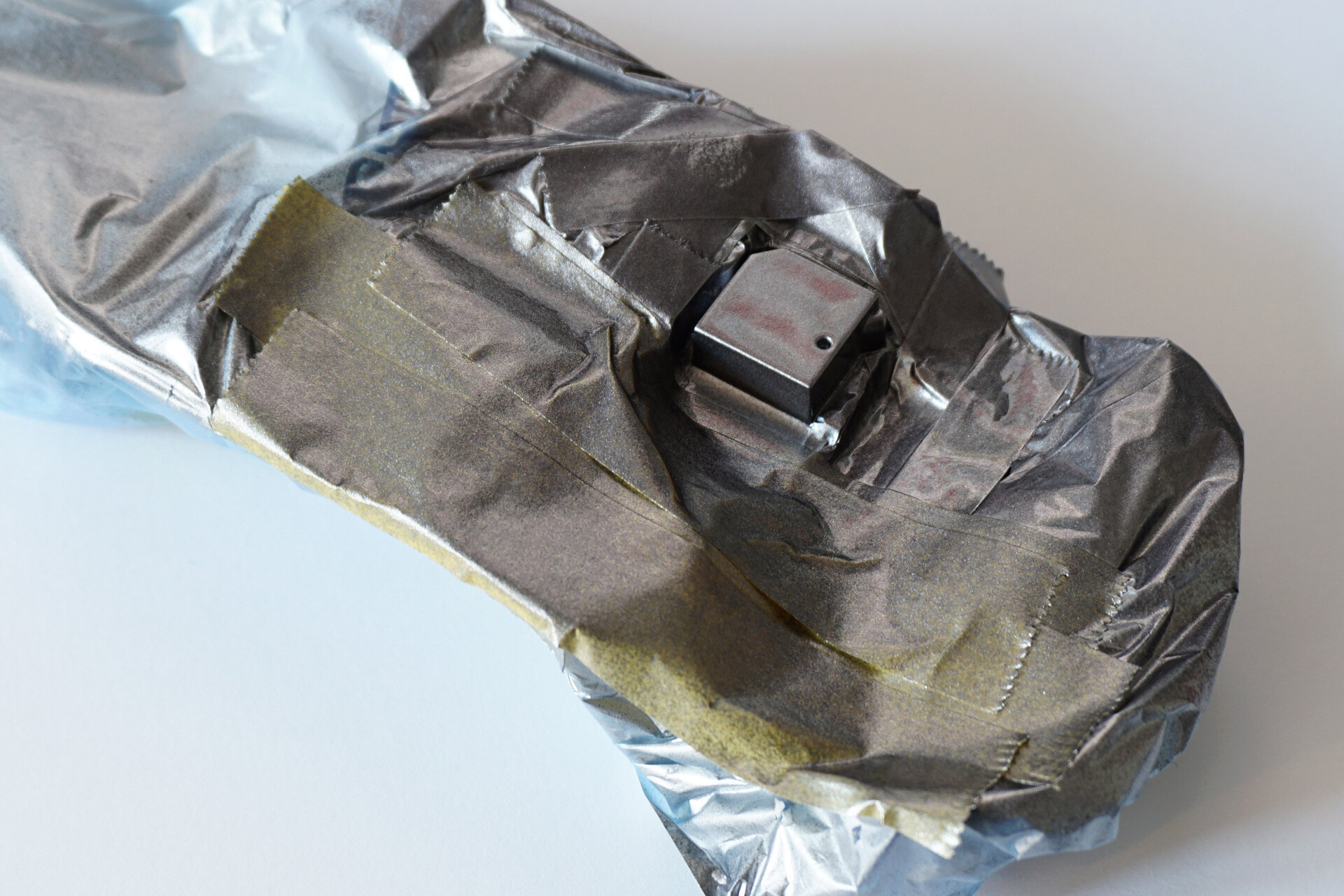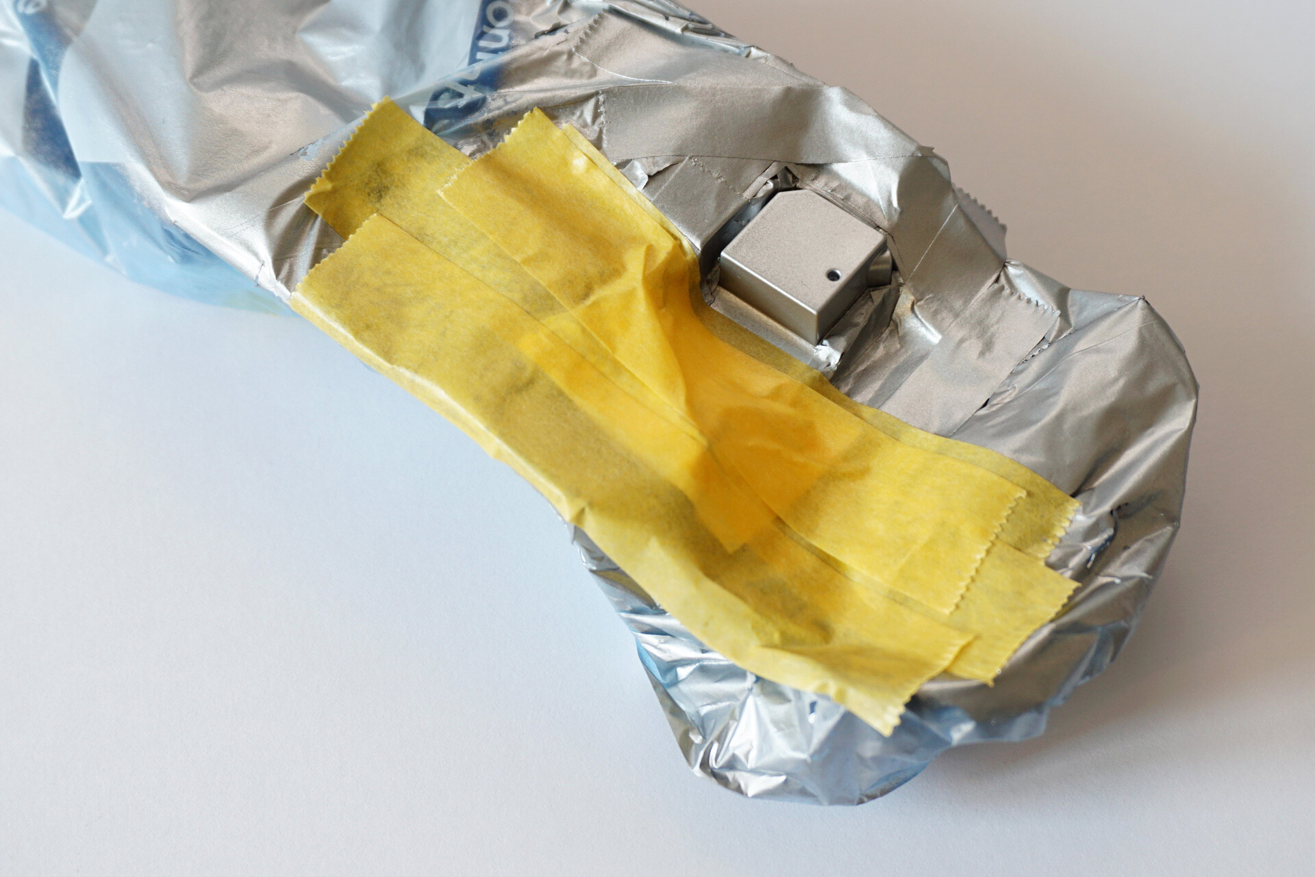 It's time to put it all together. The headphones hit the mirror, the wires are connected, the cage is stuck together.