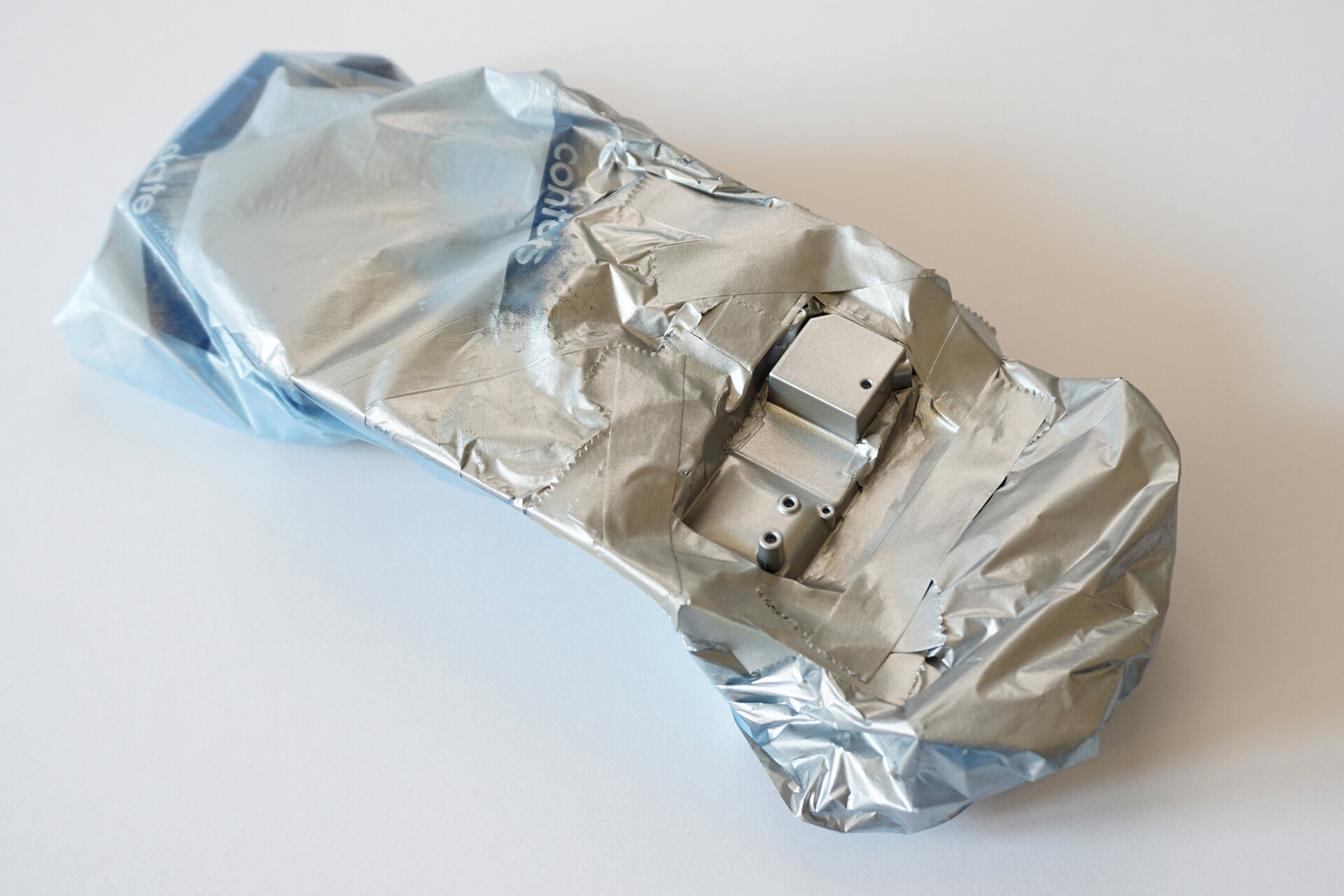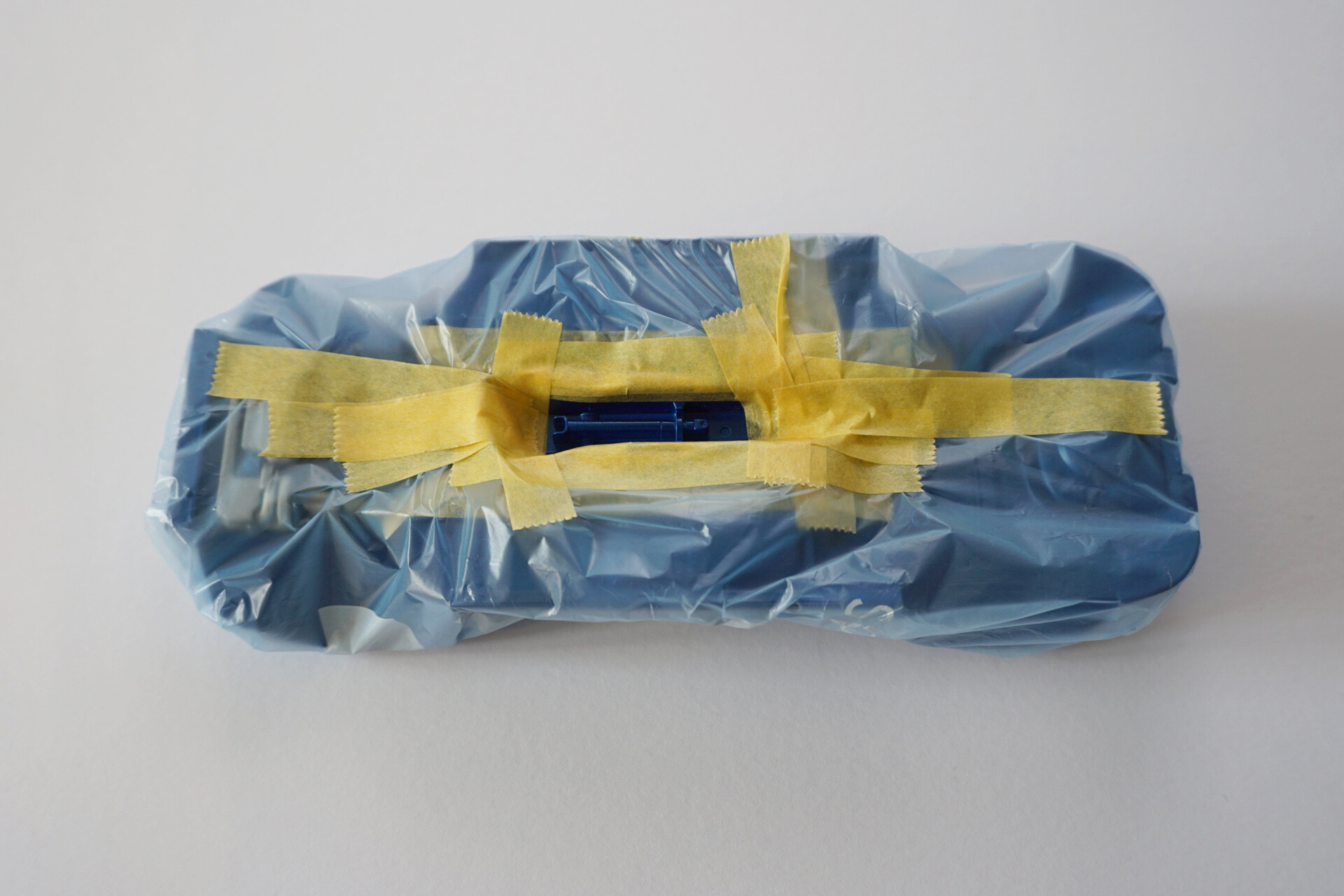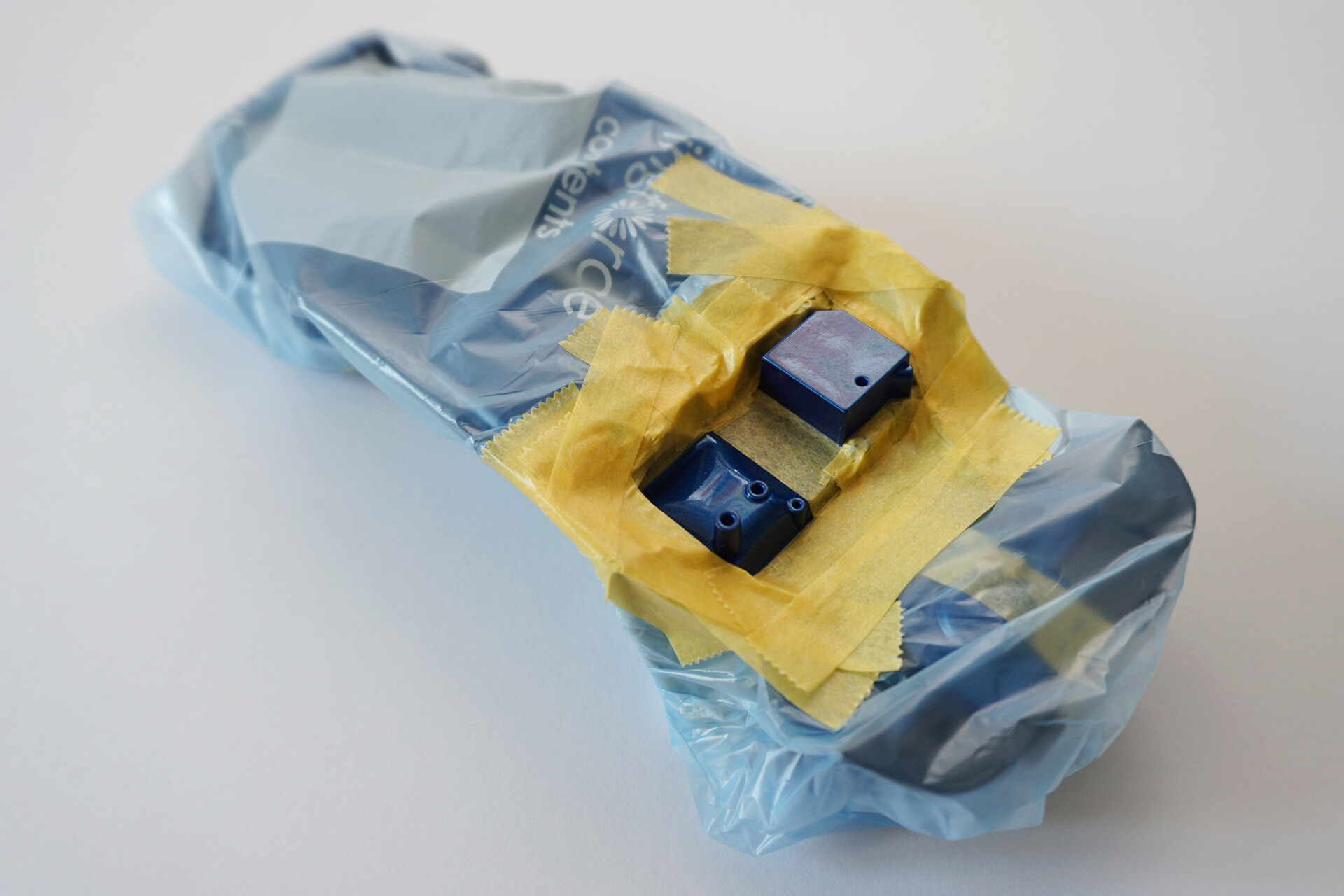 It's time to put it all together. The headphones hit the mirror, the wires are connected, the cage is stuck together.