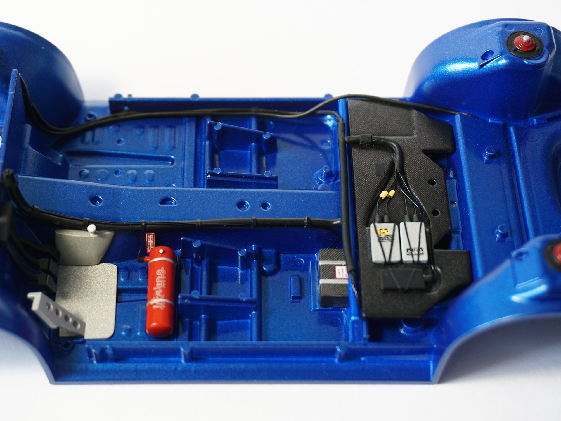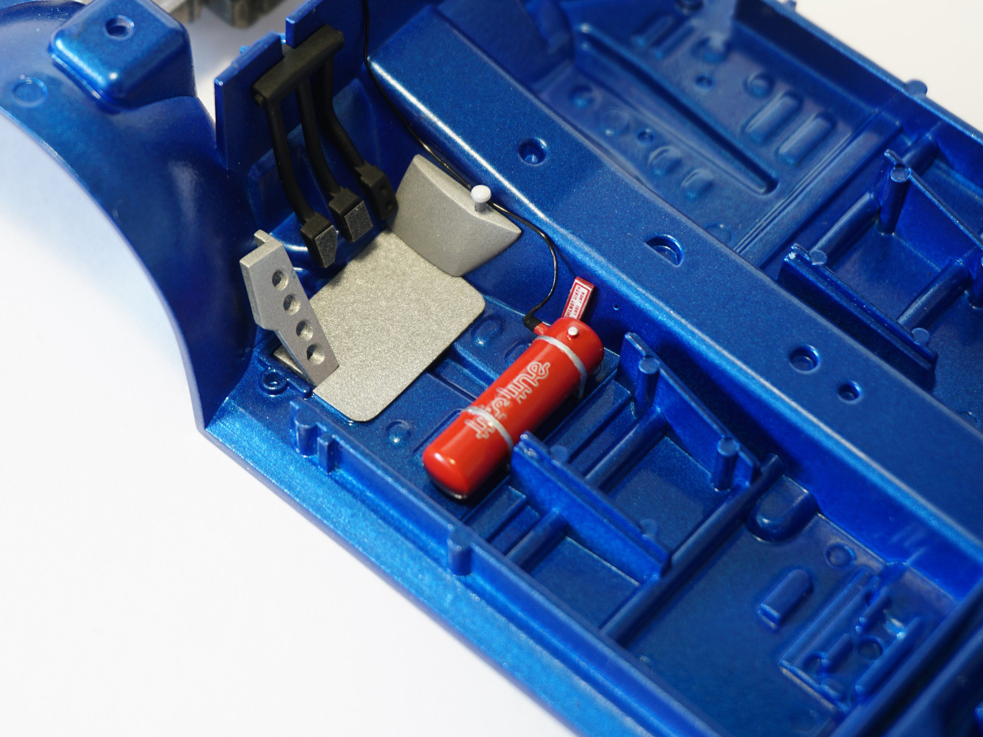 Then I added anti-slip 'dots', buttons, stickers describing the buttons and inserted a fire extinguisher and an impact wrench along with a mounting made after technical consultations with Piotr STI22B.